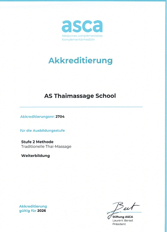 Die Schule ist akkreditiert vom thailändischen Ministerium für Gesundheit für alternativ Medicine